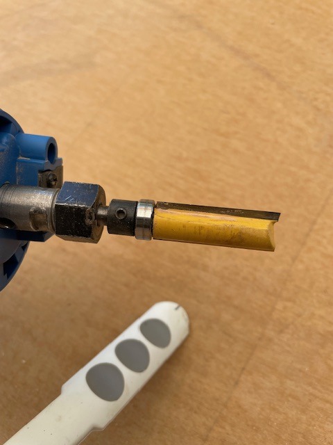 MDFや合板などを使ってテンプレートを作りますが、ベアリング付きビッドのコロ(ローラー)の高さが8mmですので12mm程度の厚みがある板を使われるといいと思います。