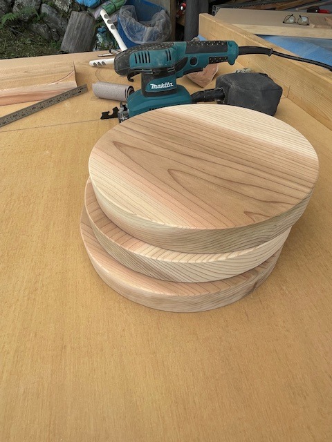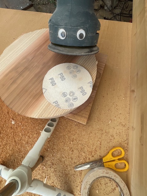 オービタルサンダー#240で仕上げる必要は無いかも知れませんが、サンディングディスクのメーカーによる違いがあるのかも知れませんが、丁寧にランダムサンダーで仕上げても薄く円の跡が残ってしまうことがあります。それを消すためにオービタルサンダーで仕上げています
