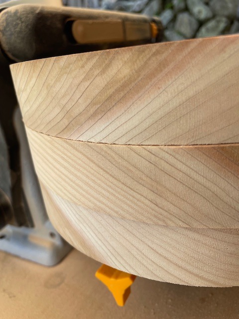 トリマーで削っただけでは、木端、木口はとても粗いです。特に木口は、繊維の方向が違うため、年輪の粗いところでは細胞穴が多くツルツルに研磨するにはにとても時間がかかってしまいます。