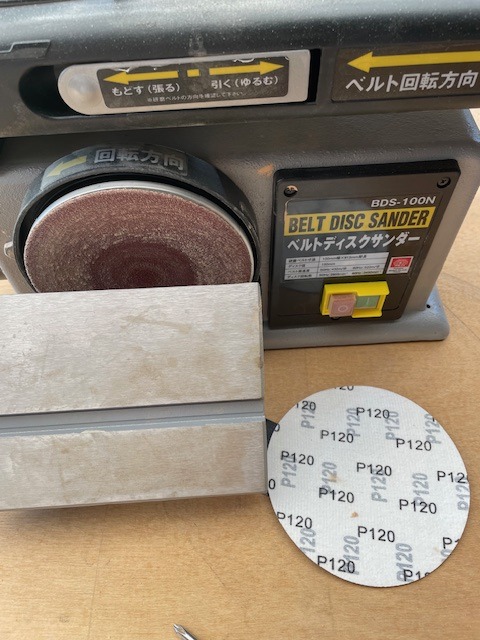 サンディングディスクを#120に付けかえ中仕上げ