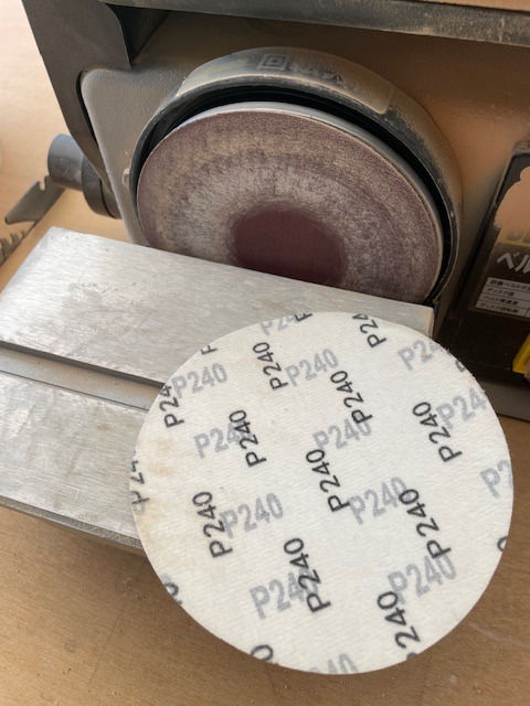サンディングディスクを#240に付けかえ仕上げ