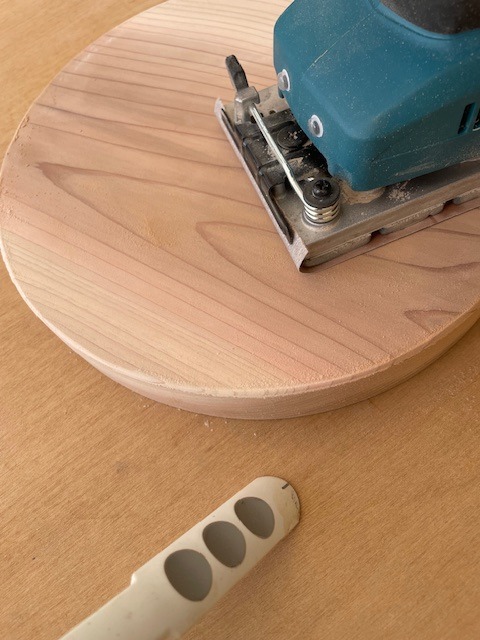 ・コンパスで円を描き、ジグソー+ヤスリがけで丸く整える