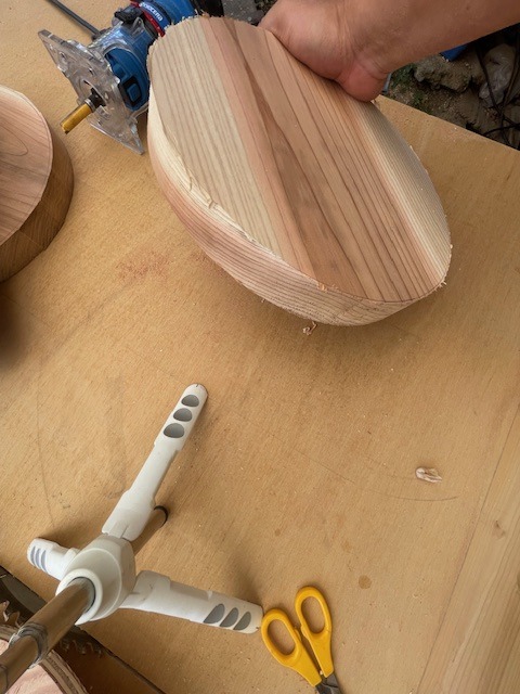 前回、トリマーテーブルをご紹介させていただきましたが、今回は、トリマーを使って直径27cmのスツールの丸い座面を製作しましたので、その方法とポイントをご紹介したいと思います。
