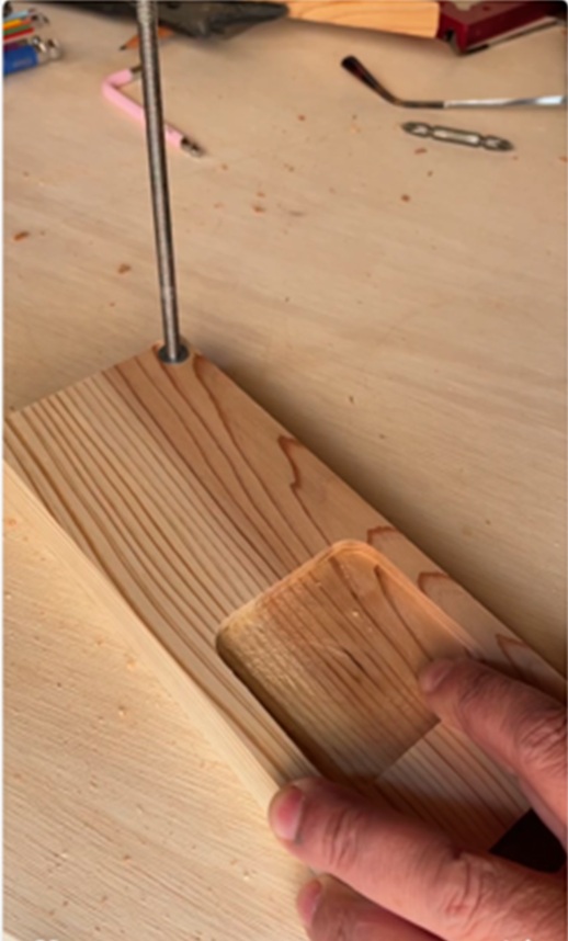 ・2段を外し3段目のドリル穴から続けて穴をあける。