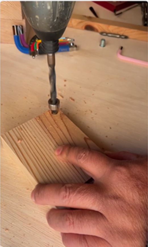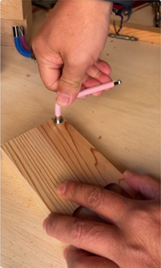9mmドリルで穴を開け、六角レンチでねじ込みます。