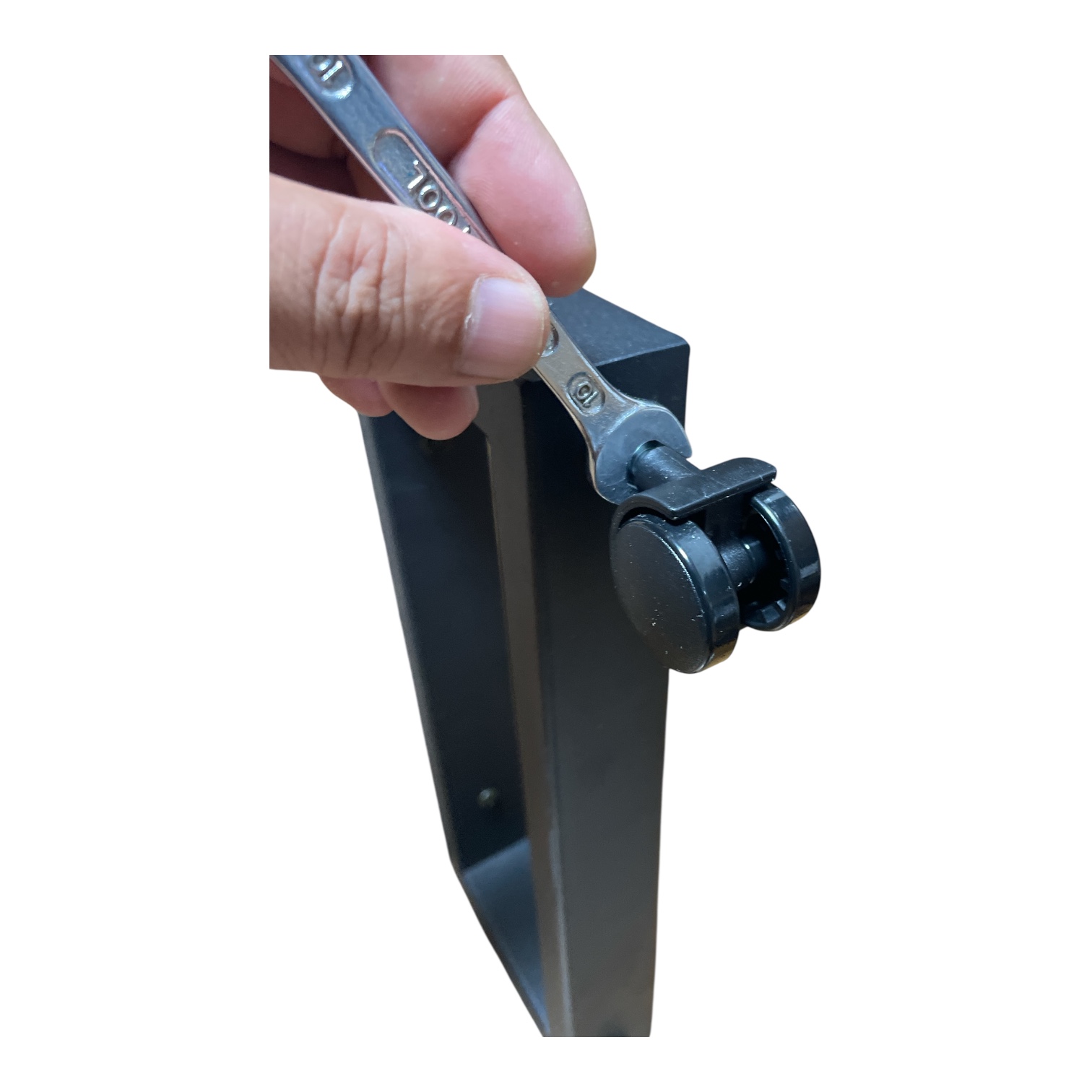 フレームの底にはアジャスターが付いていますが、既存のアジャスターを外してキャスターに交換することができます。