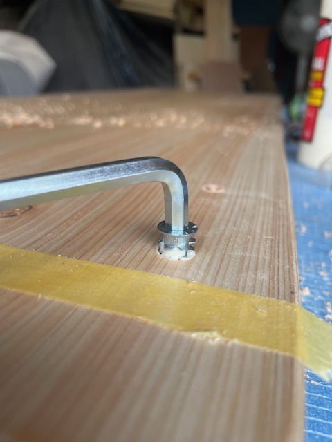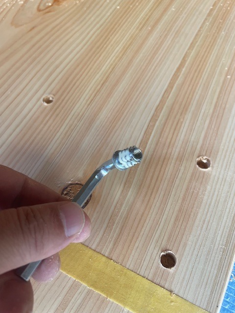 六角レンチで鬼目ナットをねじ込みます。